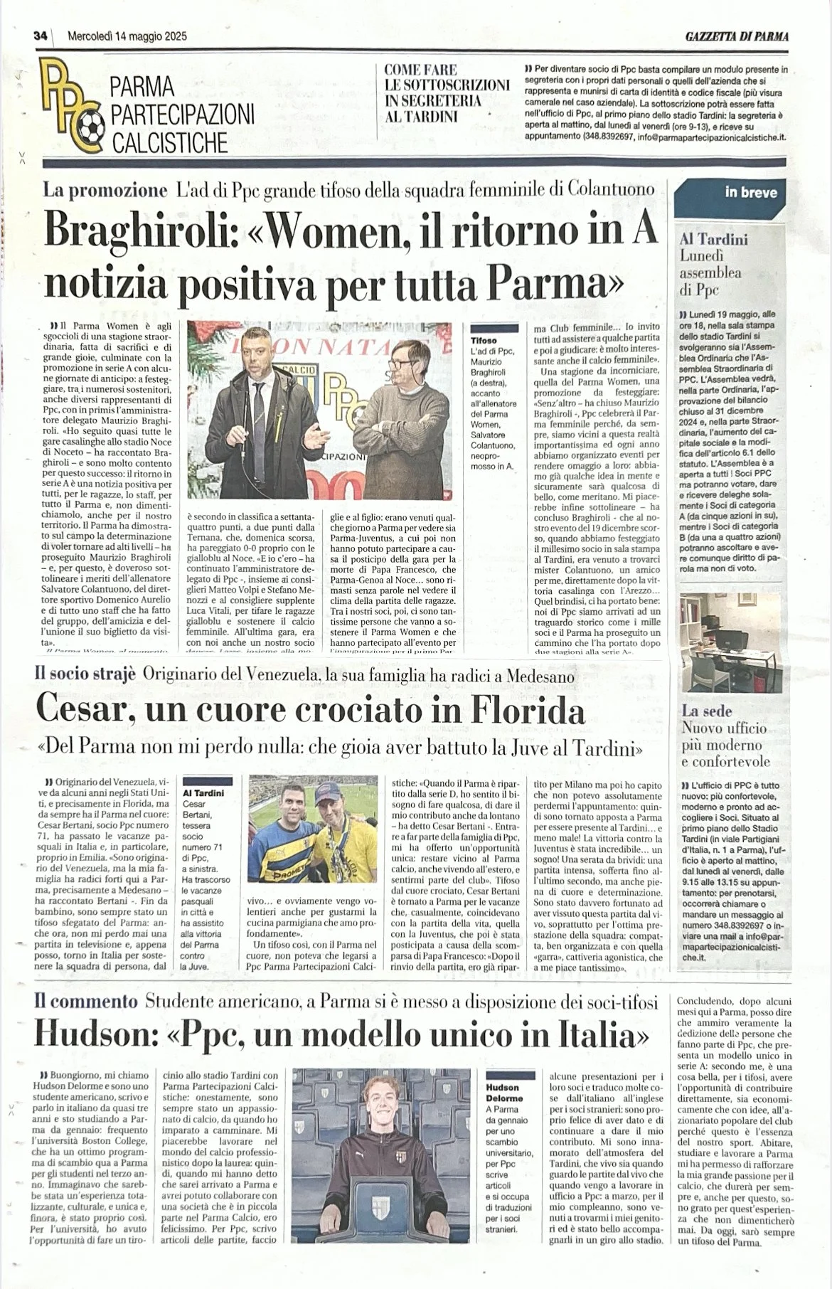 On May 14, 2025, La Gazzetta di Parma, the main news outlet here in Parma, published an article I wrote about my experience interning for Parma Partecipazioni Calcistiche (PPC) while studying abroad in Parma for the semester. Writing in Italian, I spoke about what I accomplished interning for them in these 4 months and the invaluable lessons I learned being immersed in the culture of such a historic club, Parma Calcio 1913. It has been a truly incredible experience and I was honored to be asked to publish this article about how much it meant to me.
